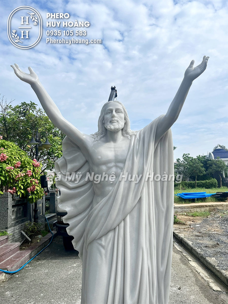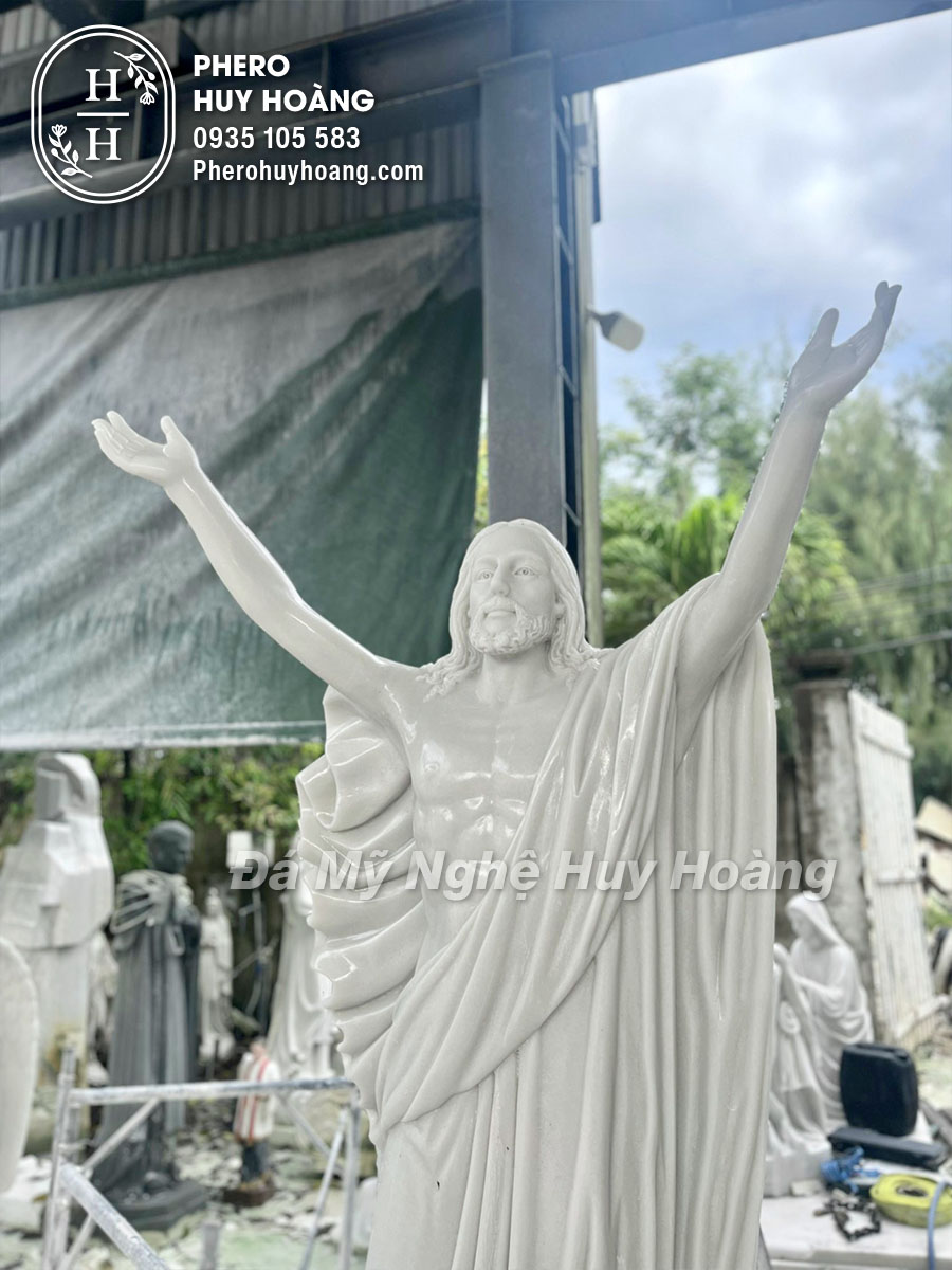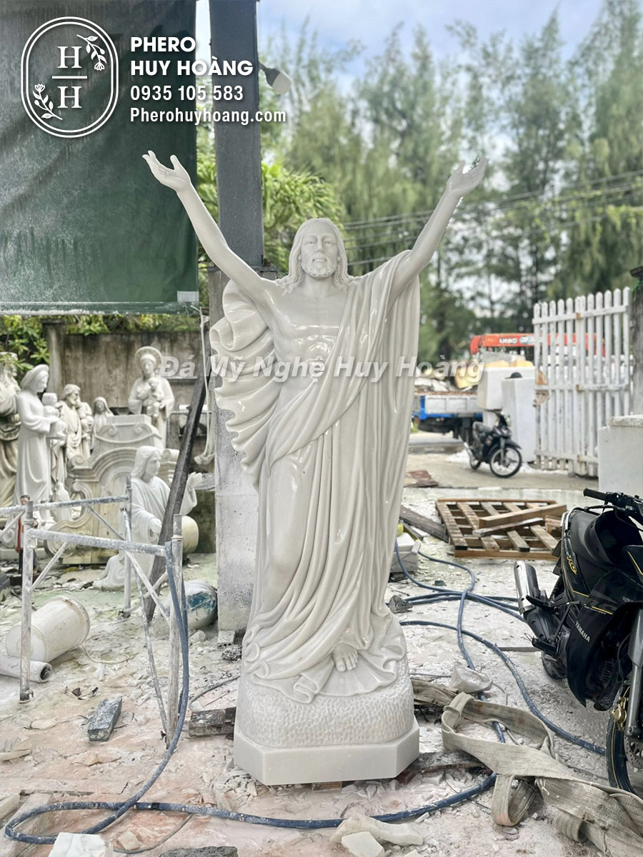 Tượng Chúa Giê-su Lên Trời (Chúa Thăng Thiên) được điêu khắc bằng đá cẩm thạch trắng tự nhiên nguyên khối.
