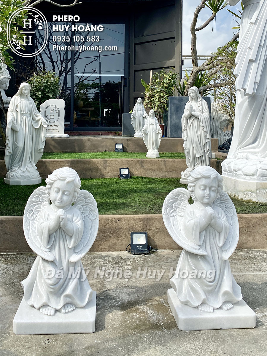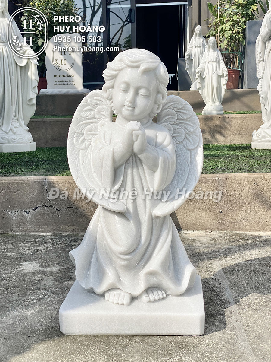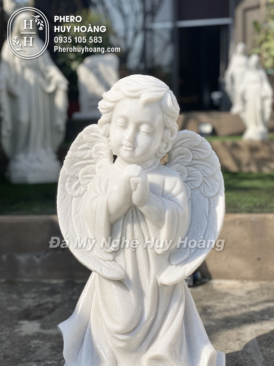 Tượng Thiên Thần chắp tay cầu nguyện được điêu khắc từ Đá cẩm thạch trắng cát mịn nguyên khối.