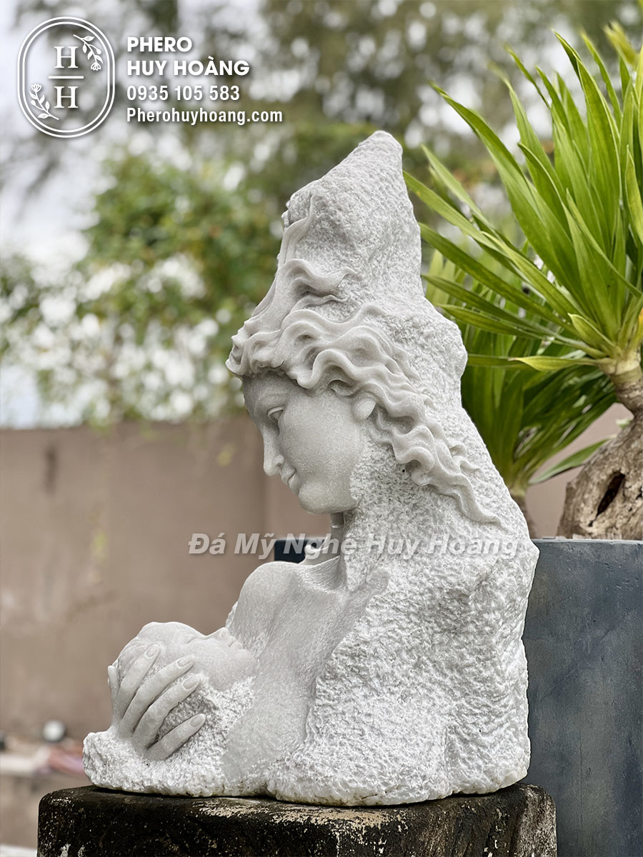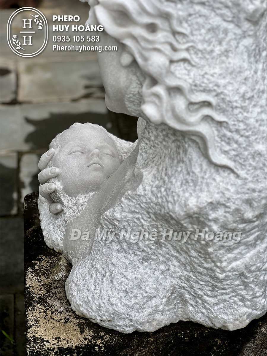 Tượng Tình Mẫu Tử được điêu khắc từ Đá cẩm thạch trắng nguyên khối.